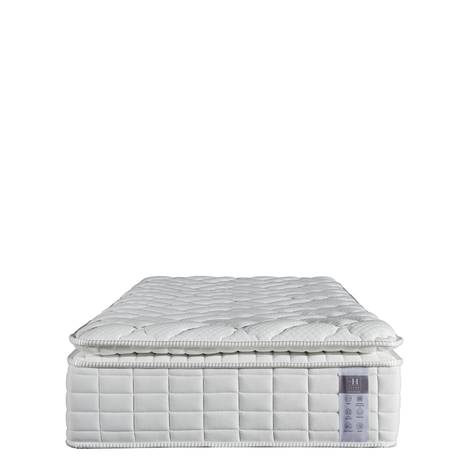 The H Sleep-Signature is a mid-segment mattress designed for sleepers who prefer a structured, supportive feel with a comfortable top. The surface starts with a breathable knitted fabric, supported by fiber quilting and double quilted foam to create a soft first contact while maintaining stability.